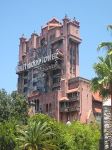 We rode on a few rides, and of course I had to ride my old nemesis, the Tower of Terror. I rode that ride for the first time when I was sixteen, and it terrified me. I don’t like elevators or heights or darkness or falling…and yeah, that’s the Tower of Terror. In the photo, there’s everybody with their arms in the air, looking thrilled, and then there’s me, hunched over and trying not to die. It gave me nightmares until last fall when one of my neighbors decided she was going to cure me once and for all, and dragged me on the ride. No really, she had to hold my arm to make sure I didn’t run off.